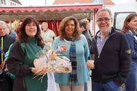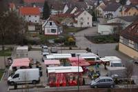 Der Wochenmarkt findet ab heute auf dem Herbert-Barth-Platz hinter dem Rathaus statt. Zur Begrüßung am neuen Standort wurde jeder Besucher von den Standbetreibern auf ein Glas Sekt eingeladen. Gemeinderat Jörg Schmitt begrüßte die Marktleute und Besucher. Frau Rauscher vom Handels- und Gewerbeverein überreichte an Frau Kästle ein Geschenk.