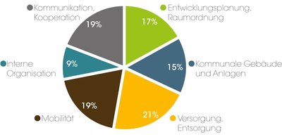 Die Bewertung der Energie- und Klimaschutzpolitik der Städte / Gemeinden erfolgt auf Basis eines Punktesystems. Die grundsätzliche Verteilung der Punkte auf die Maßnahmenbereiche zeigt die nachfolgende Grafik.