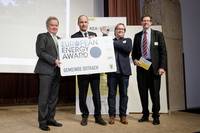 Bürgermeister Christoph Schulz, Ralf Scholter und Manfred Essl vom Projektteam der Gemeinde sowie Michael Bauer von der Energieagentur Sigmaringen nahmen für Ostrach die Auszeichnung entgegen.